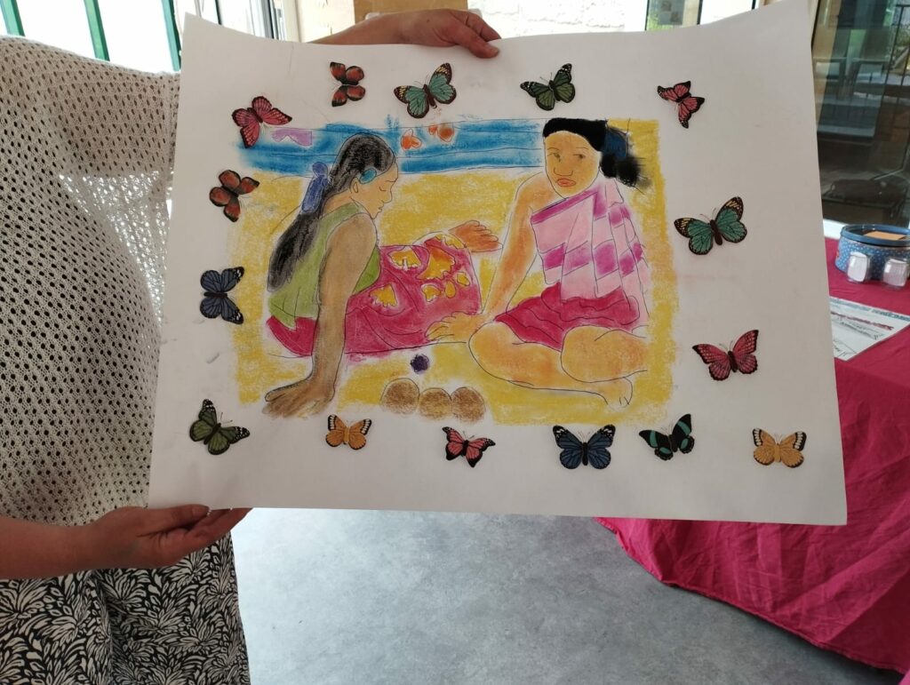 Lors des activités artistiques ou créatives qui leur sont proposées, les enfants peuvent venir leur prêter main forte, et développent ainsi des liens étroits avec eux.